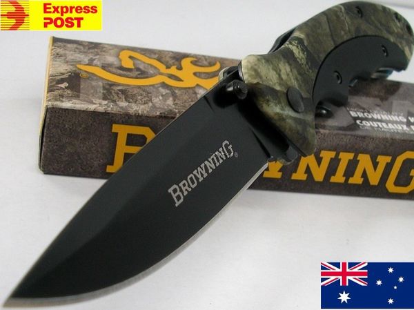 Browning browning for her linerlock pocket knife. 5 3/4 (146mm) opened. 3 1/4 (83mm) closed.2 1/2 (64mm) sandvik 12c27 stainless black coated blade with thumb ridge. Mossy oak dura-touch armor coated handles with black finish stainless bolster. Note: camo patterns will differ since it is a camo pattern!