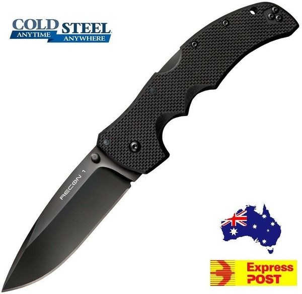 Recon 1 knives have a reputation for their solid construction and functional build. The latest Recon 1 from Cold Steel features a premium CPM-S35VN steel spear point blade with a plain edge and a black DLC coating. Its textured black G-10 handle has the Tri-Ad Lock, a 6061 aluminum heat-treated back spacer, and a reversible, tip-up pocket clip. With everything that has made the Recon series a perennial favoriteĀ andĀ a premium S35VN stainless steel blade, there's never been a better time to get one!