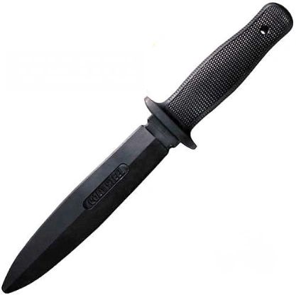 The Santoprene rubber blades are soft enough to prevent the likelihood of most bodily injury. They do however, have a level of firmness that might cause injury to the face or the eyes, so it is recommended that appropriate eye protection or a fencing mask is utilized at all times when using a Cold Steel® rubber training knife.