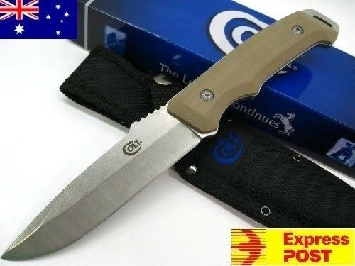 This Colt Fixed Blade Knife is amazing! It has a Desert Tan G-10 Handle with a Matte Finished 440A Stainless Steel Blade! It comes brand new in the original packaging with warranty!