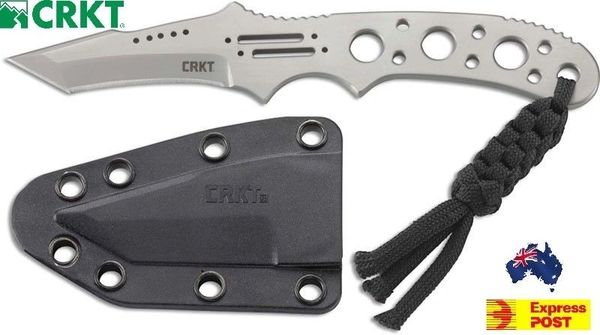 Don't let its size fool you. This Crawford-designed tactical knife with a tanto blade is ready for burly duties. Just draw it from the sturdy sheath in a snap and feel its lightweight construction, thanks to holes in the frame. Your heavy-duty on-mission tasks have been warned.