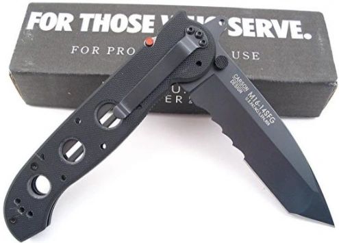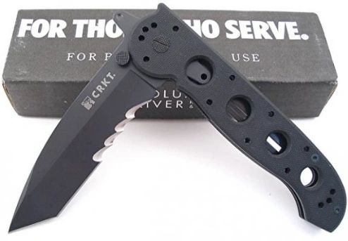 CRKT M16 Big Dog. Special Forces. 5 3/8 closed linerlock. 8Cr14 stainless tanto blade with black titanium nitride coating and Veff serrations. Black G-10 handles. Black coated stainless pocket clip. Features the AutoLAWKS safety."