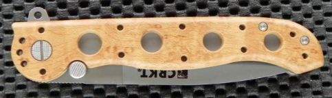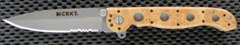 The CRKT M16 Zytel Combo Edge Desert Camo Military edge is a 4 5/8" closed linerlock. Partially serrated AUS-6M stainless spear point blade and bead blast finish. Desert camo Zytel handles with stainless pocket clip. Features LAWKS safety system.