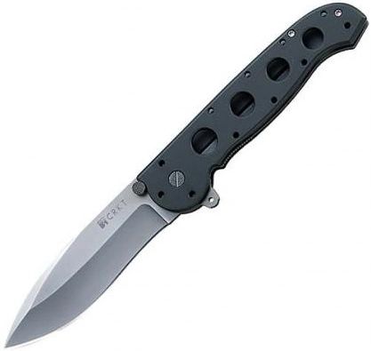 CRKT M21 Linerlock knife is 5 1/4" closed in length with a Standard edge AUS-8 stainless spear point blade.