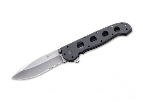 The brand-new M-21 is the fusion of two classic knives of CRKT. M-18 and M-16 have been merged. The demand for a slightly bellied blade for every-day use got louder and louder. The ergonomic design of the handle of the M-16-series is well proven a thousand times and more. So why not combine both models? The result is quite convincing. The modified blade of the M-18 is ideal for cutting, carving, and peeling. The additional LAWKS safety prevents the stainless AUS-8 blade from closing accidentally. Overall length 23.5 cm. Blade 10 cm. Weight 153 g. Partly serrated edge.