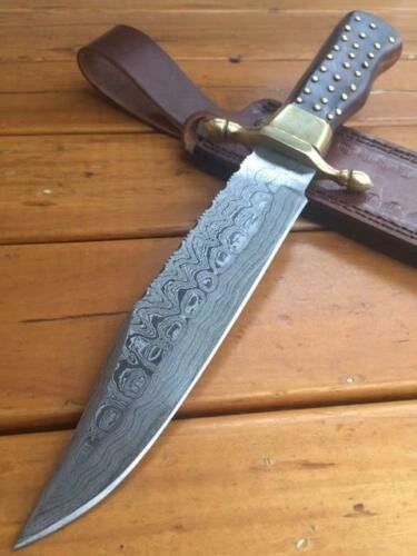 CUSTOM MADE DAMASCUS - BOWIE Bush Hunting Knife + LEATHER SHEATH!