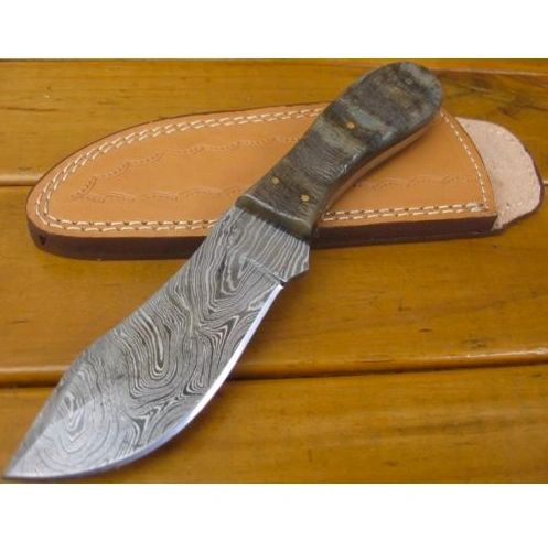 CUSTOM MADE DAMASCUS BOWIE Bush Hunting Knife RAMS HORN HANDLE