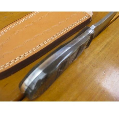 If you are the type of person who demands Smooth Lines, Exceptional Balance, Quality, and Rarity in their Hunting Knife, this outstanding 326mm Damascus Steel Hunter complete with Custom Leather Sheath, will fit the bill. From pummel to point, this knife is superior in quality. 5mm full tang thick Damascus blade. The knife is constructed with 180 layers of AIS 1084 (consists of high carbon) steel and AIS 1250 (low carbon steel). The handle(17mm thick) is SOLID RAMS HORN , fitted to the tang with 4 brass pins. In fact, the knife you receive will be a one of a kind, as no 2 blades can ever be identical. Comes with a THICK solid cow hide sheath which may fit to your belt. Please note, the sheath alone is designed for this knife and is 1 piece leather (not reconstituted leather) and retails over $40. If you have been looking for that Custom knife to carry that will turn heads whether in the sheath or out, this knife is for you! The guard/bowter is made of SOLID POLISHED BRASS. The bowie knife is 223mm overall length and the blade is 100mm long, and 5mm thick. Please see the pics and get in fast to secure one of the best quality knives you will ever come by! RRP $ 200+ ITEM POSTED VIA EXPRESS REGISTERED POST |