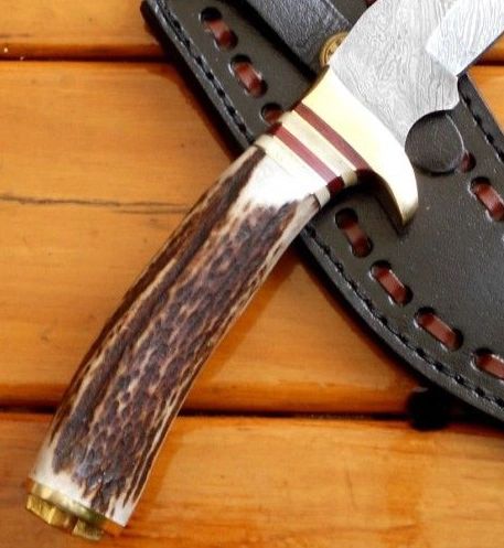 CUSTOM MADE DAMASCUS BOWIE Bush Hunting Knife - STAG skinner drop point + SHEATH