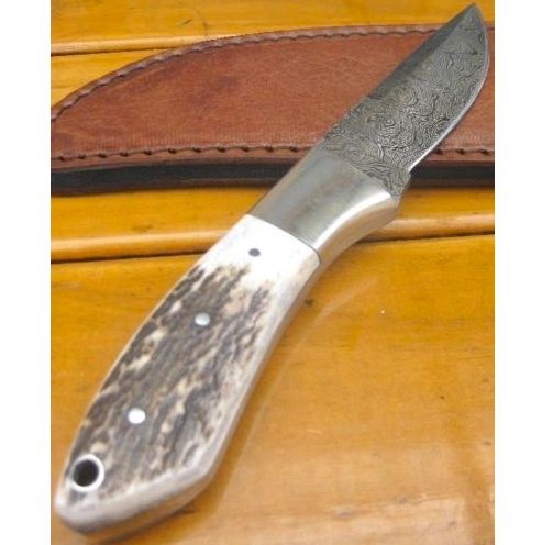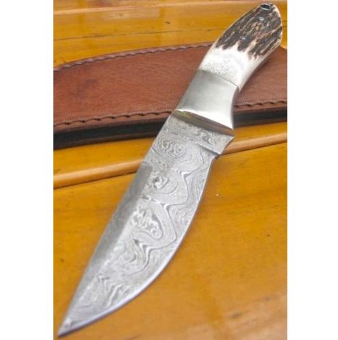 CUSTOM MADE DAMASCUS DROP POINT SKINNER BOWIE Bush Hunting Knife STAG HORN DEER
