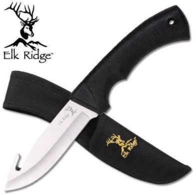 ELK RIDGE - BLACK RUBBER HANDLE GUT HOOK SKINNER