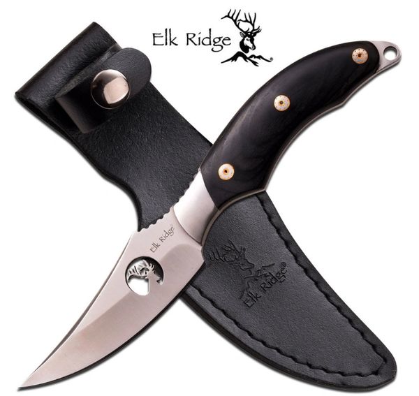 ELK RIDGE - BLACK WOOD SKINNING KNIFE - HUNTING BOWIE SKINNER + LEATHER SHEATH