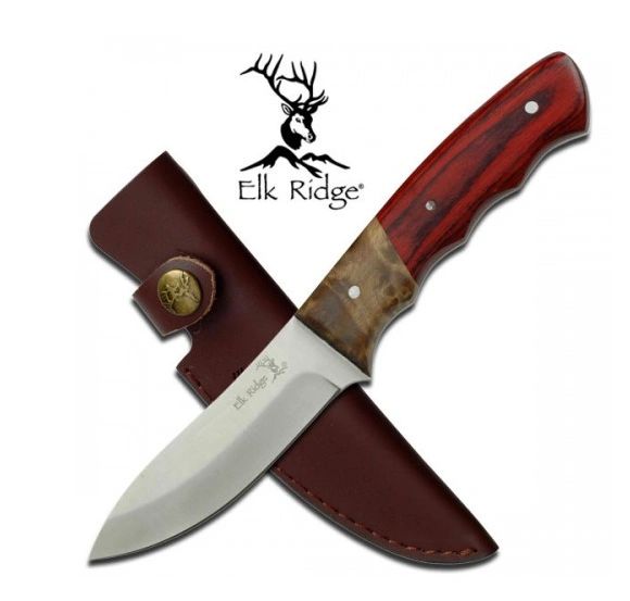 ELK RIDGE - BURL & PAKKA Wood Handle Full Tang DROP POINT - SKINNER Hunting Knife Elk Ridge Knives presents the ultimate hunting knife. Boasting a 440C stainless steel blade with the Elk Ridge logo and a BURL WOOD & PAKKAWOOD handle for a mighty 216mm overall length! The ultimate sportsman gift, gift for him, gift for anyone - anytime! ITEM POSTED VIA EXPRESS REGISTERED POST