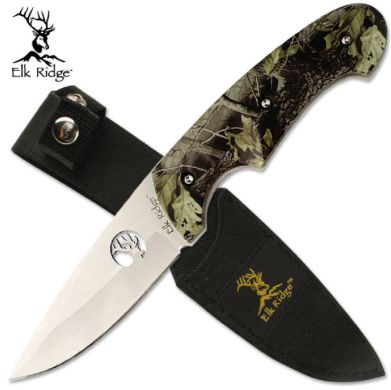 Elk Ridge Knives presents the ultimate hunting knife. Boasting a 95mm 440C stainless steel blade with the Elk Ridge logo LASER CUT through blade and an ergonomic camo handle bolted to the blade for a mighty 207mm overall length! The ultimate sportsman gift, gift for him, gift for anyone - anytime!