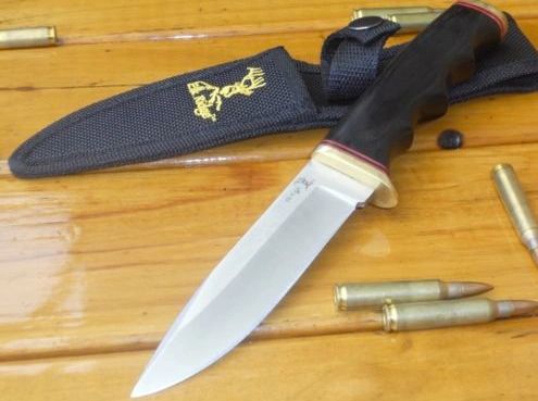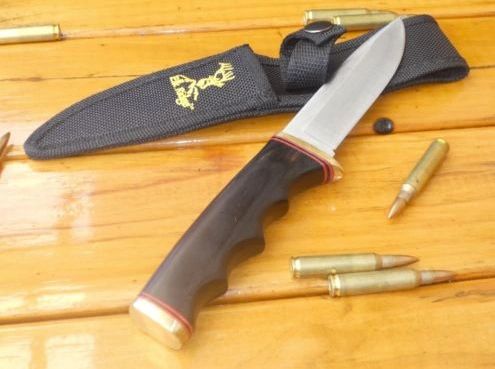ELK RIDGE - Full Tang - DROP POINT SKINNER– BRASS GUARD Hunting Knife Elk Ridge Knives presents the ultimate hunting knife. Boasting a 119mm 440C stainless steel blade with the Elk Ridge logo and a pakawood handle with a solid BRASS GUARD & POMMEL for a mighty 234mm overall length! The ultimate sportsman gift, gift for him, gift for anyone - anytime! An exceptionally priced knife that must be seen to be appreciated! Features
