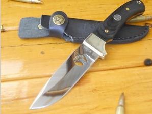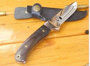 ELK RIDGE - Full Tang - DROP POINT SKINNER– POLISHED - PAKAWOOD Hunting Knife Elk Ridge Knives presents the ultimate hunting knife. Boasting a 100mm 440C HIGHLY POLISHED stainless steel blade with the Elk Ridge logo laser cut THROUGH the blade and a black pakkawood handle heldin place with 2 brass pins and with a solid POLISHED BRASS GUARD for a mighty 209mm overall length! The ultimate sportsman gift, gift for him, gift for anyone - anytime! An exceptionally priced knife that must be seen to be appreciated! Features