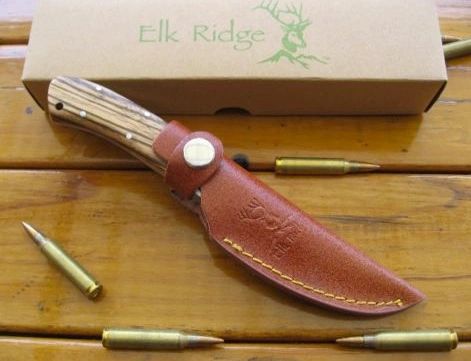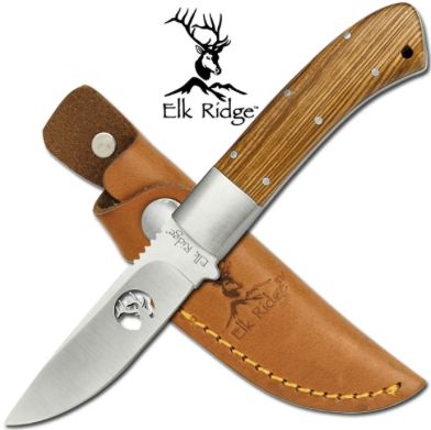 ELK RIDGE - ZEBRA wood Full Tang DROP POINT Bowie - Hunting / Skinning Knife