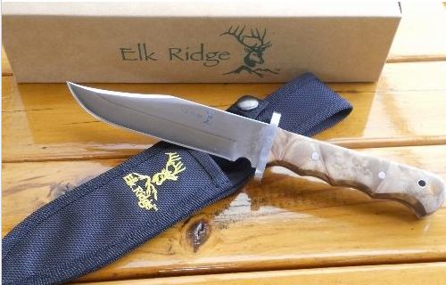 ELK RIDGE - BURL WOOD BOWIE HUNTING KNIFE