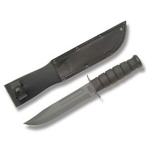 Ka-Bar's 1211 USA knife is a fixed blade that is amazing for its piercing power. The Ka-Bar knife was designed to serve our troops in World War II and is still doing an excellent job today. The Ka-Bar knife gains its strength from the 1095 high carbon stainless steel blade. A black epoxy powder coat is used on the KA-BAR blade which is perfect for camouflage and stealth action. The rubber handle of the KA-BAR knife has a non slip grip that has amazing control in any weather.