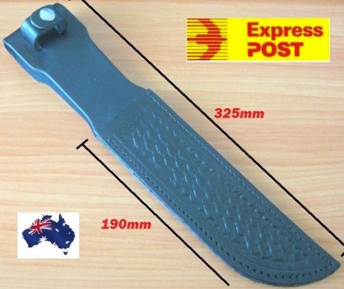 BLACK COWHIDE LEATHER SHEATH WITH CHROME PRESS STUD, HEAVY DUTY NYLON STICHING.