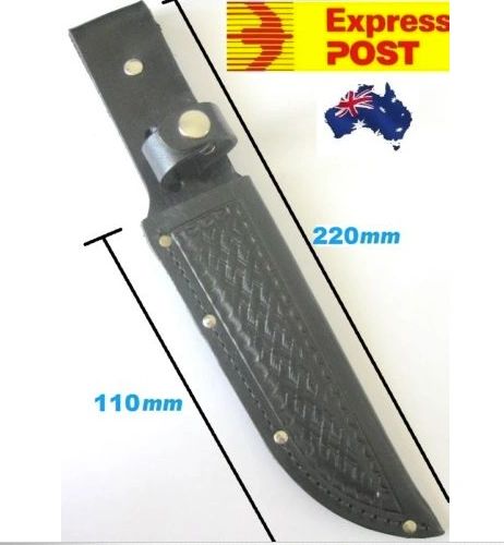 BLACK COWHIDE LEATHER SHEATH WITH CHROME PRESS STUD, HEAVY DUTY NYLON STICHING. These are the maximum dimesions of your tool which will fit this pouch. Please note leather does stretch and may be tight at first. Total Length: 220mm Blade length: 110mm Blade width maximum: 30mm Maximum belt loop width: 80mm Maximum handle leather loop diameter: 30mm ITEM POSTED VIA EXPRESS REGISTERED POSTFIXED BLADE KNIFE / TOOL LEATHER BELT SHEATH