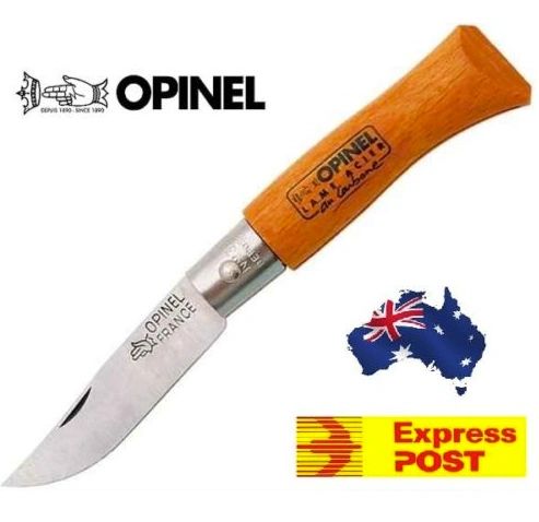 Folding Knife No.2 OPINEL France, handmade france cutlery, sport pocket knives with blade of XC90 Carbon Steel of high quality satin finished - HRC 54/56 - 1 7/8 inches CLOSED - Thickness 0.08" - Handle made with Beech Wood, a very elegant wood, hard, compact and with very light color - Steel bolsters - Traditional Lock system - Overall lenght 4" - OPINEL France, Company Founded in 1890 by Joseph Opinel - A Opinel knife really exceptional with quality materials and an excellent French design, superior quality in all the components and also in the finishes.** OPINEL ** MADE IN FRANCE - NUMBER 2 - N2 BEECHWOOD CARBON
