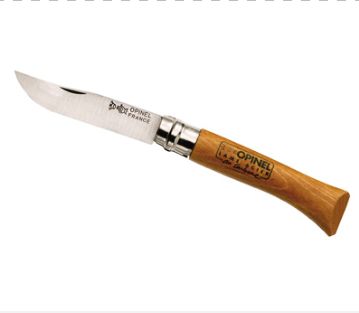Item Opinel No. 9 Folding Knife Best use Hiking; Camping; Fishing Weight 60g Closed length 12m Max blade length 21cm Number of blades 1 Blade type Carbon Steel; Straight One-handed opening No Locking blade Yes