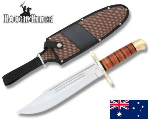 ROUGH RIDER - EXTRA LARGE TRADITIONAL BOWIE KNIFE - LEATHER HANDLE + SHEATH!