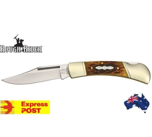Graze your way and cut through the woods with the Rough Rider Stainless Lockback Folding Knife. This folding knife manufactured by the experts at Rough Rider features a 440 stainless clip