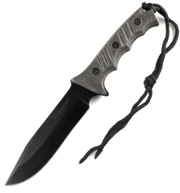 Schrade Extreme Survival Full Tang Fixed Blade, Black 7C17 High Carbon Stainless Steel Bowie Blade, Textured and Grooved Micarta Handle Slabs, Lanyard Hole, Lanyard, Multiple Carry Position Ballistic Belt Sheath with Large Storage Pouch