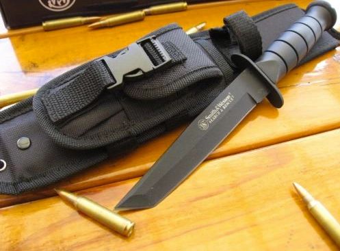 SMITH & WESSON - SEARCH & RESCUE Black Tanto Military Knife + Sheath